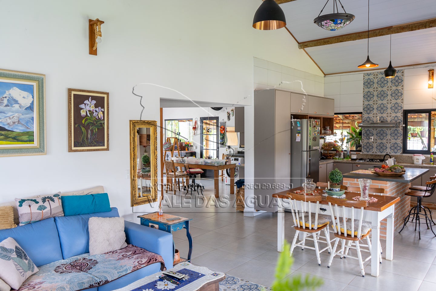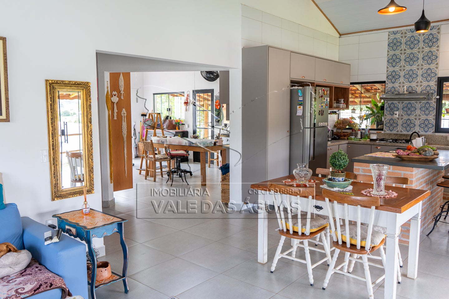Ampla sala em conceito aberto com cozinha